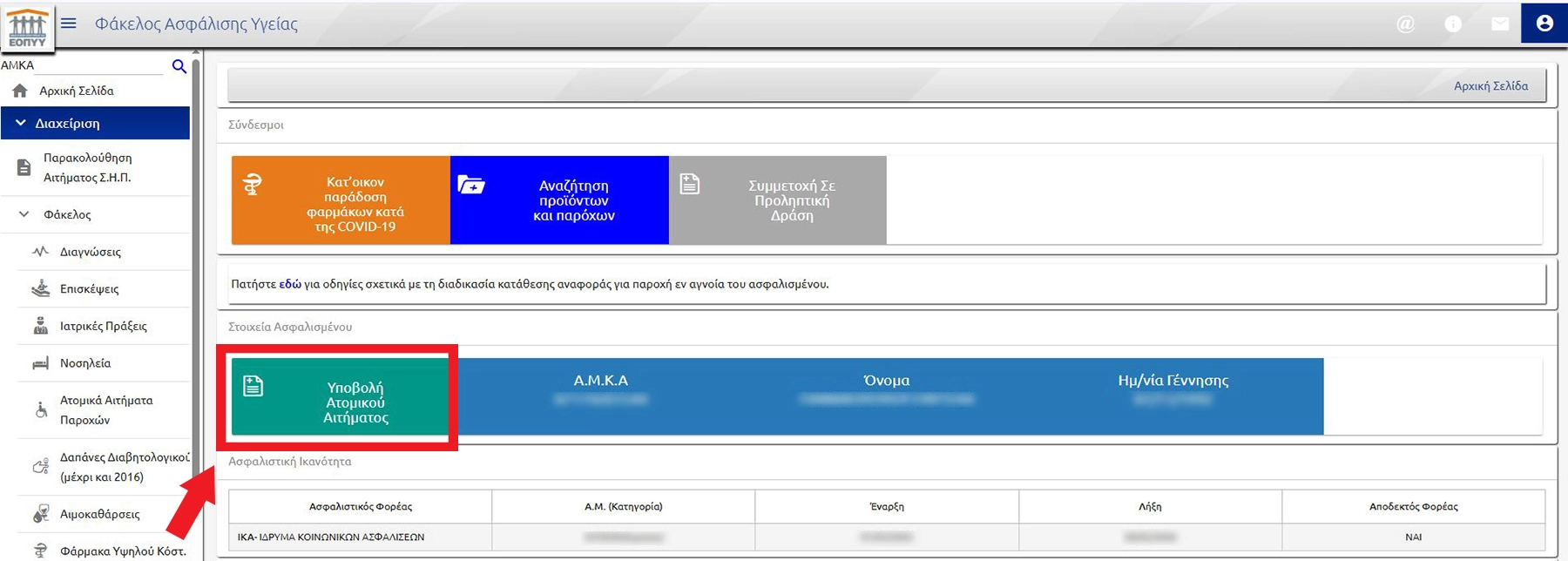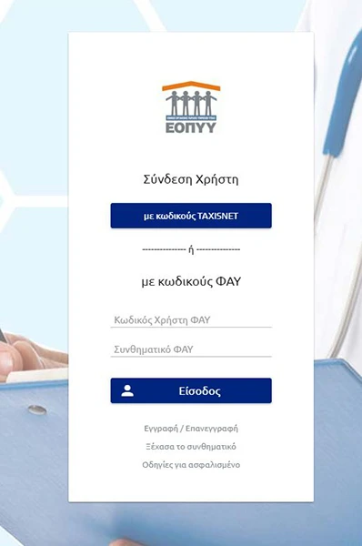 Συνδεθείτε με τους προσωπικούς κωδικούς Taxisnet ή ΦΑΥ και στη συνέχεια εισάγετε τον ΑΜΚΑ σας..