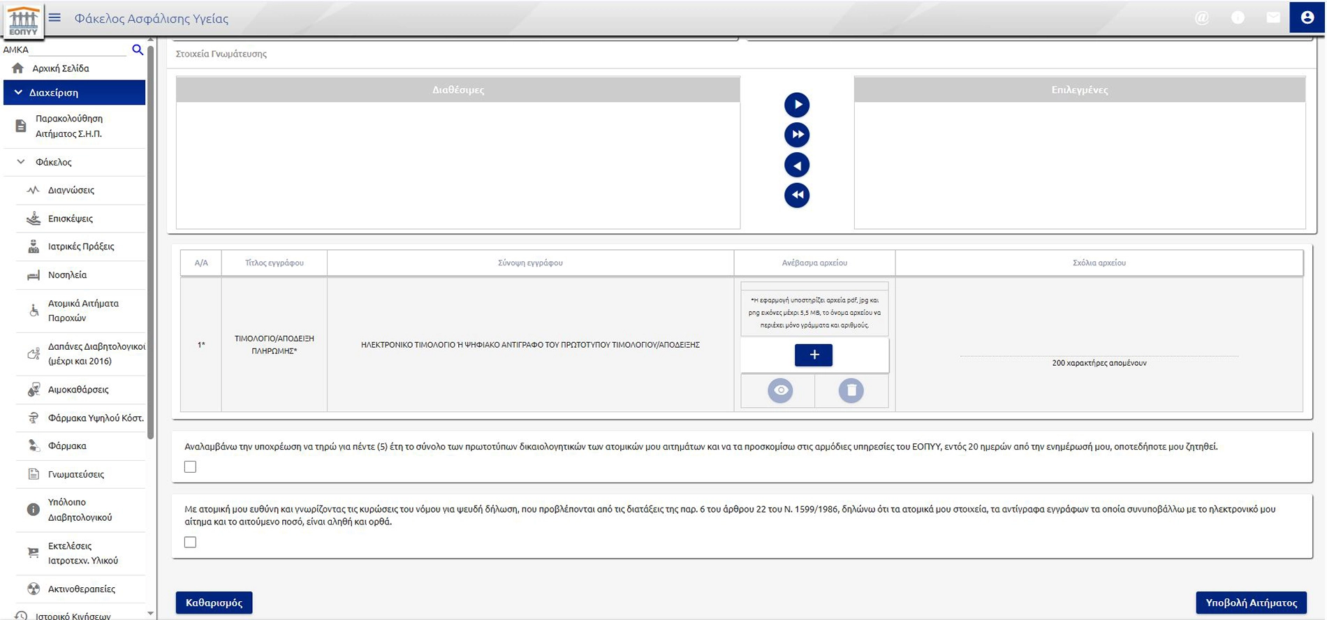 Επιλέξτε τη γνωμάτευση που αναφέρεται στην Περούκα Παθήσεως και μεταφέρετε την στις επιλεγμένες. Έπειτα, επισυνάψτε την απόδειξη αγοράς σας. Τέλος, πατήστε “Υποβολή”.