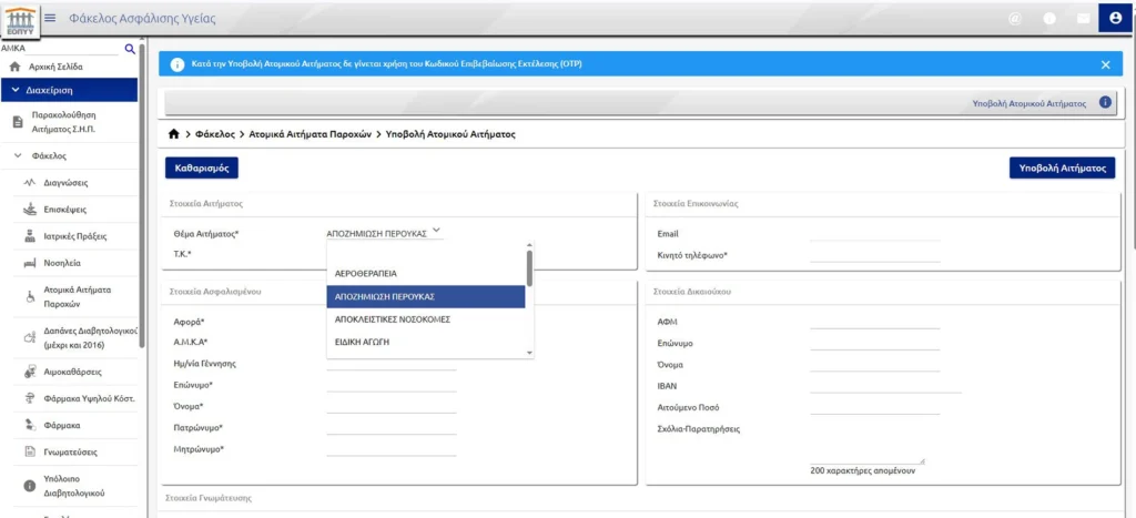 Συμπληρώστε τα στοιχεία σας και στο πεδίο “Θέμα Αιτήματος” επιλέξτε “ΑΠΟΖΗΜΙΩΣΗ ΠΕΡΟΥΚΑΣ”.